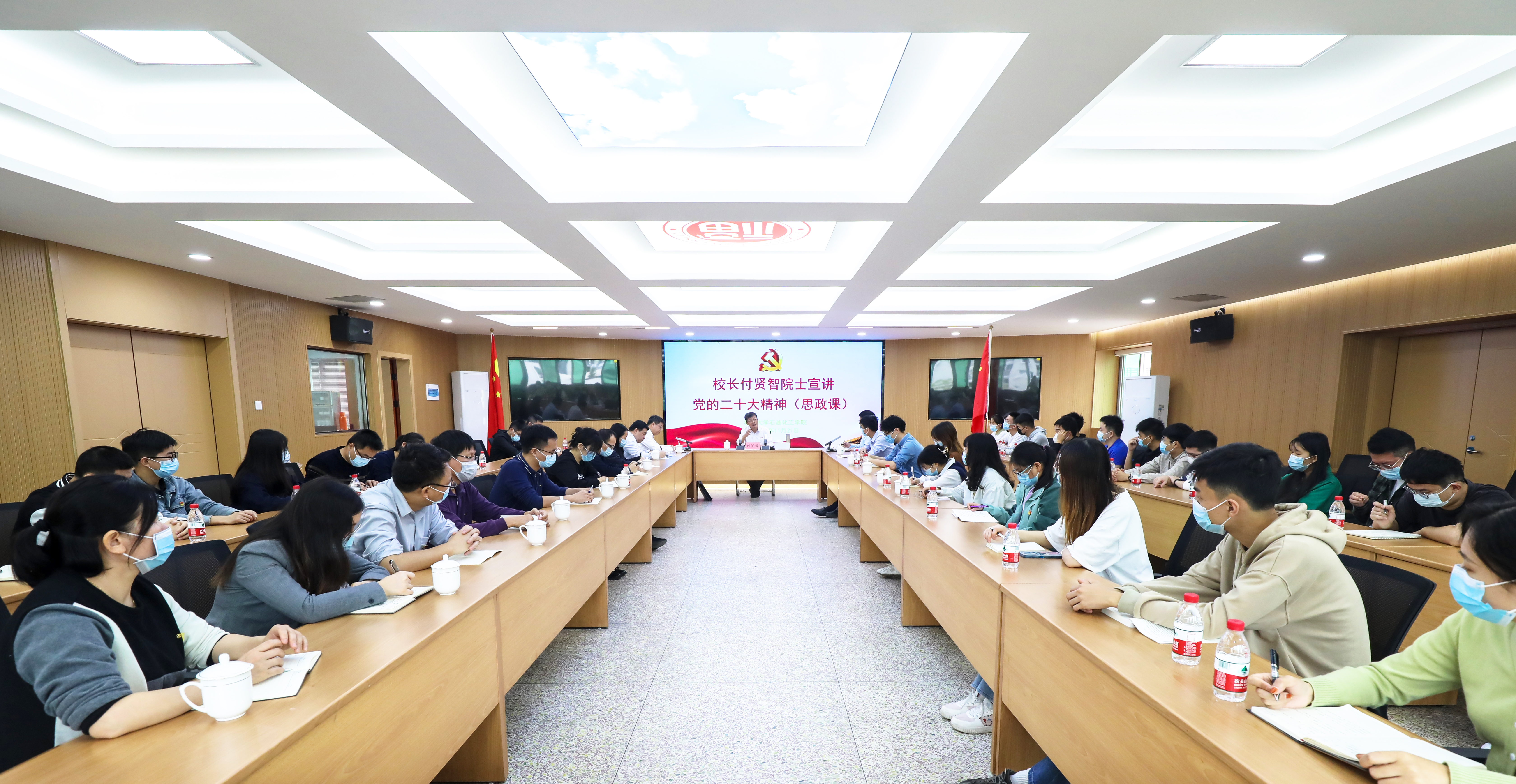 怡山校区化肥催化剂国家工程研究中心为催化中心研究生上党课(思政课),宣讲党的二十大精神。付贤智校长在课上与现场师生共同研读了党的二十大报告的主要内容,重点阐述了党的二十大报告中关于教育、人才、科技的重要论述,并从高校教育科技工作者的角度与师生们分享了自己关于党的二十大精神的学习体会。报告会由学院党委书记施卫华主持,学院院长江莉龙、副院长侯琳熙、校党政办公室副主任陈伟斌和化肥催化剂国家工程研究中心师生参加了报告会。