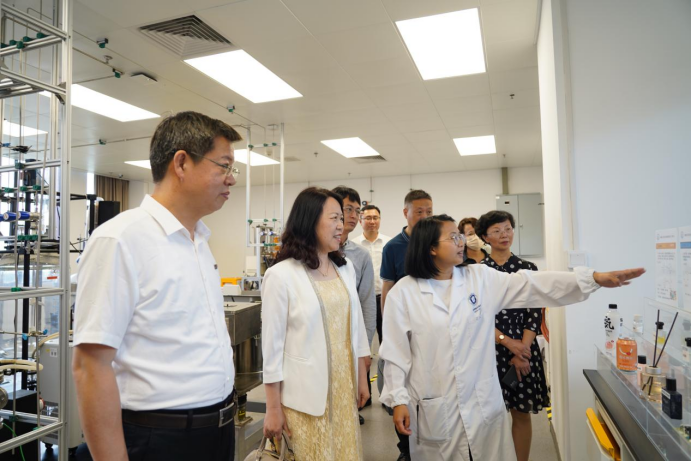 交流会结束后,在施卫华书记的陪同下,徐晓丹一行实地考察了先进纤维材料与技术实验室、精细化学品先进制造福建省高校工程研究中心、 苏畅 -佑达环保电子精细化学新材料工程技术中心。充分肯定了学院以党建为引领保障各项事业的高质量发展,突出化工学科优势,立足福建和区域经济社会发展需要,深入推进产学研合作,为地方经济社会发展作出了重要贡献。