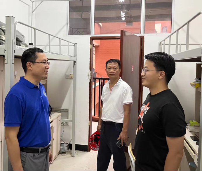 防风抗汛应急工作领导小组做到提前研判,提早部署,为留校师生提供暖心服务。林键副校长走访了食堂和学生宿舍,了解学生学习、生活方面存在的困难以及学校防风抗汛物资储备情况,并提醒在校师生员工此次“杜苏芮”台风来势汹、强度大,要提高安全防范和自我保护意识,严格遵守各项台风天安全事项,非必要不外出,自觉保护自己和他人的生命安全。