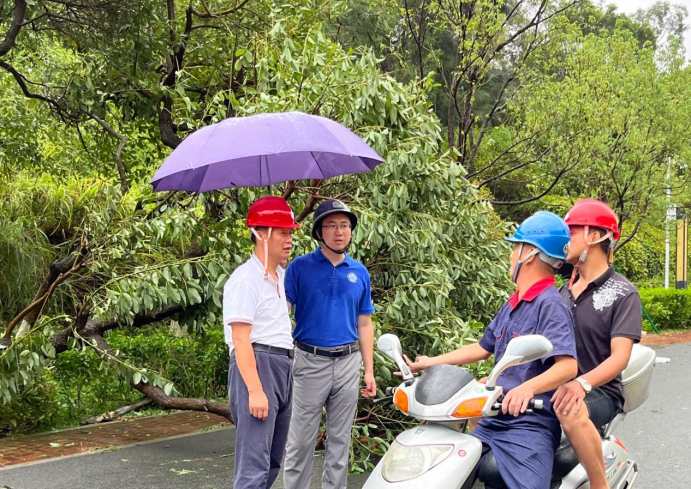 台风过后,危险并没有完全解除。林键副校长实地走访校区受灾重点区域,指导灾后重建工作。党员突击队24小时对校区重点区域开展巡线检查,特别是在建工程、易滑坡地段,并积极投入灾后自救,开展清路、清障、打扫,降低台风带来的经济损失,确保泉港校区早日恢复正常的科研、生活秩序。