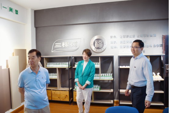 在学生社区共享社团活动中心参观绿色化工创想协会制作的洗手液等化工产品,鼓励学生积极参加社团活动丰富课余时光