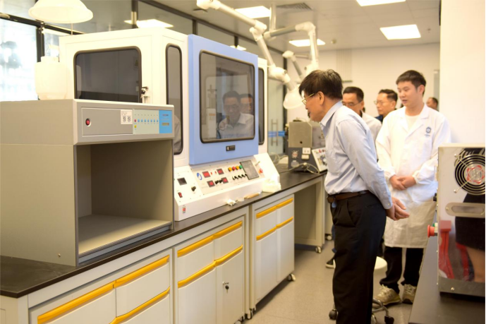 李宏会长一行首先参观了校区食堂、宿舍、图书馆,了解校区整体建设和在校师生的情况,并走进实验室,调研参观清源创新实验室测试中心、精细化学品先进制造等研发团队,听取了实验室科研攻关及产业化推进情况汇报,与科研人员围绕科研成果转化、人才引进等方面进行深入交流探讨。