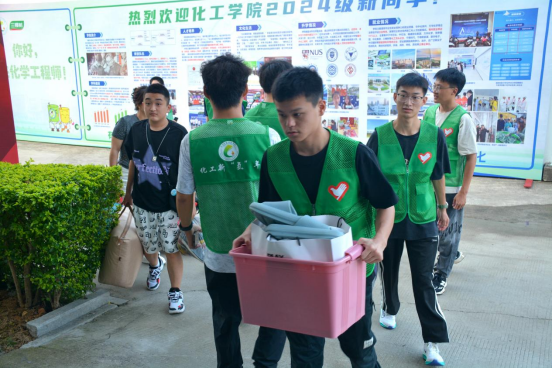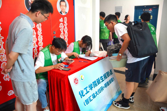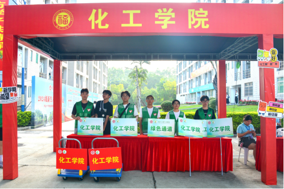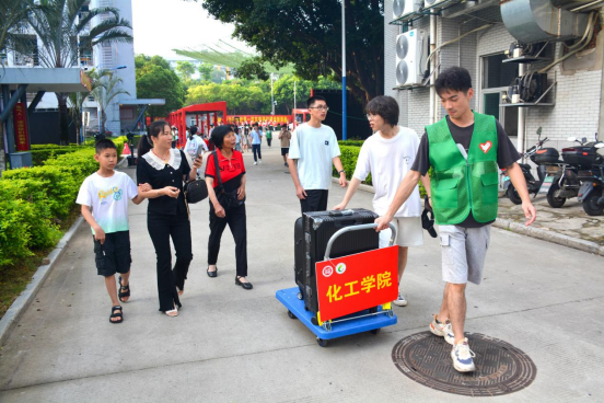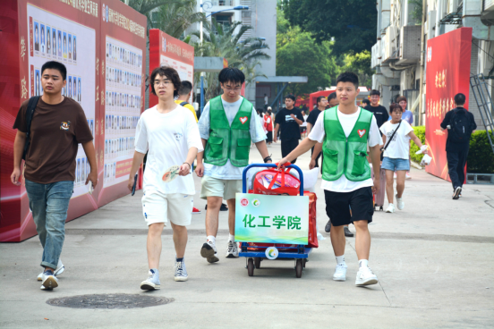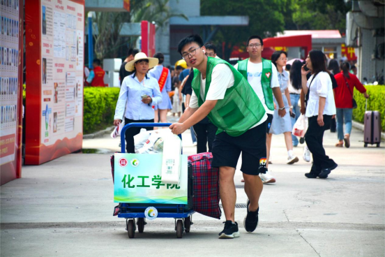校门口、帐篷侧、楼道内,身穿马甲的学长学姐热心招呼、指引路线,装满“梦想”的行李,坐上“集结号”小推车,从此心归化工。