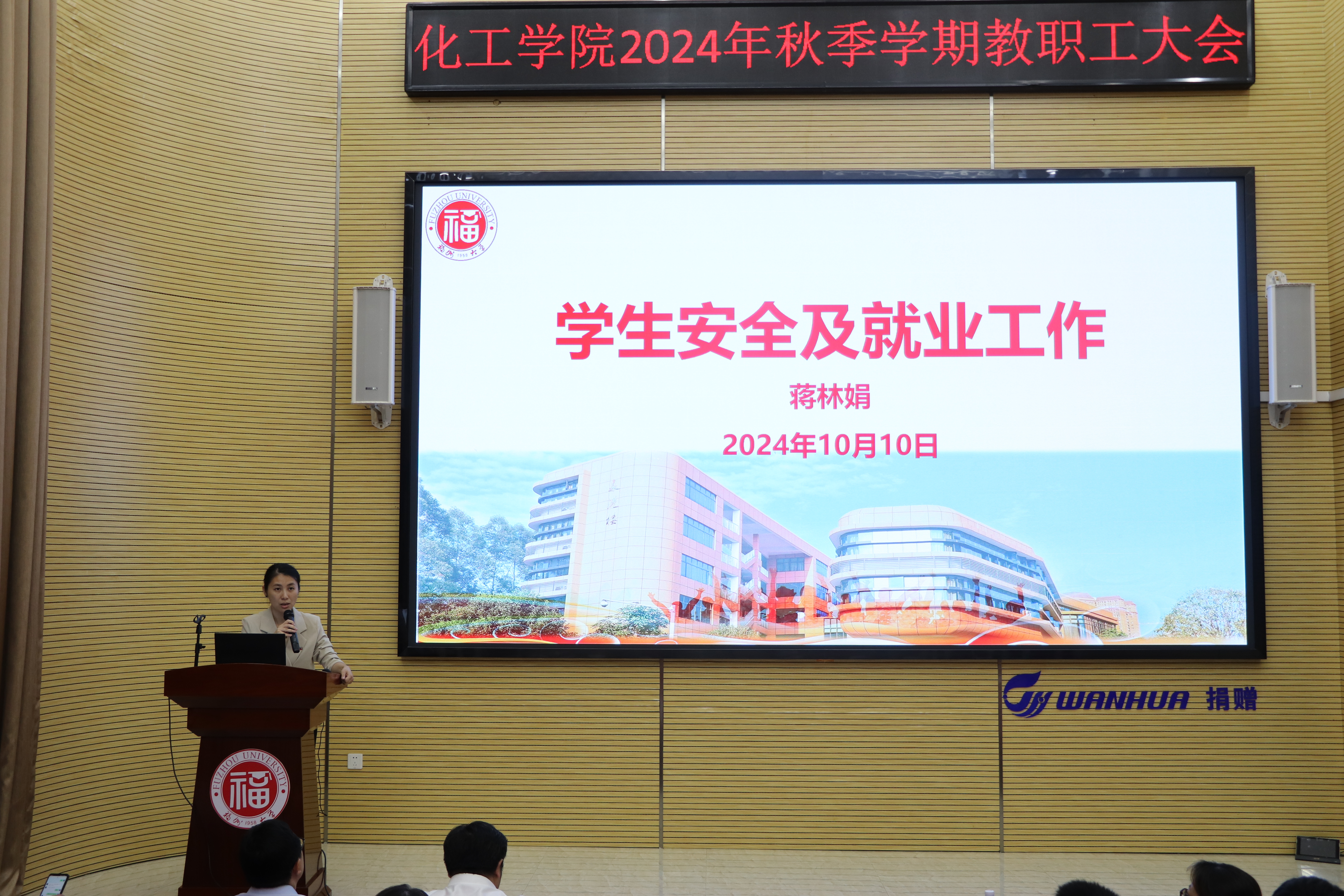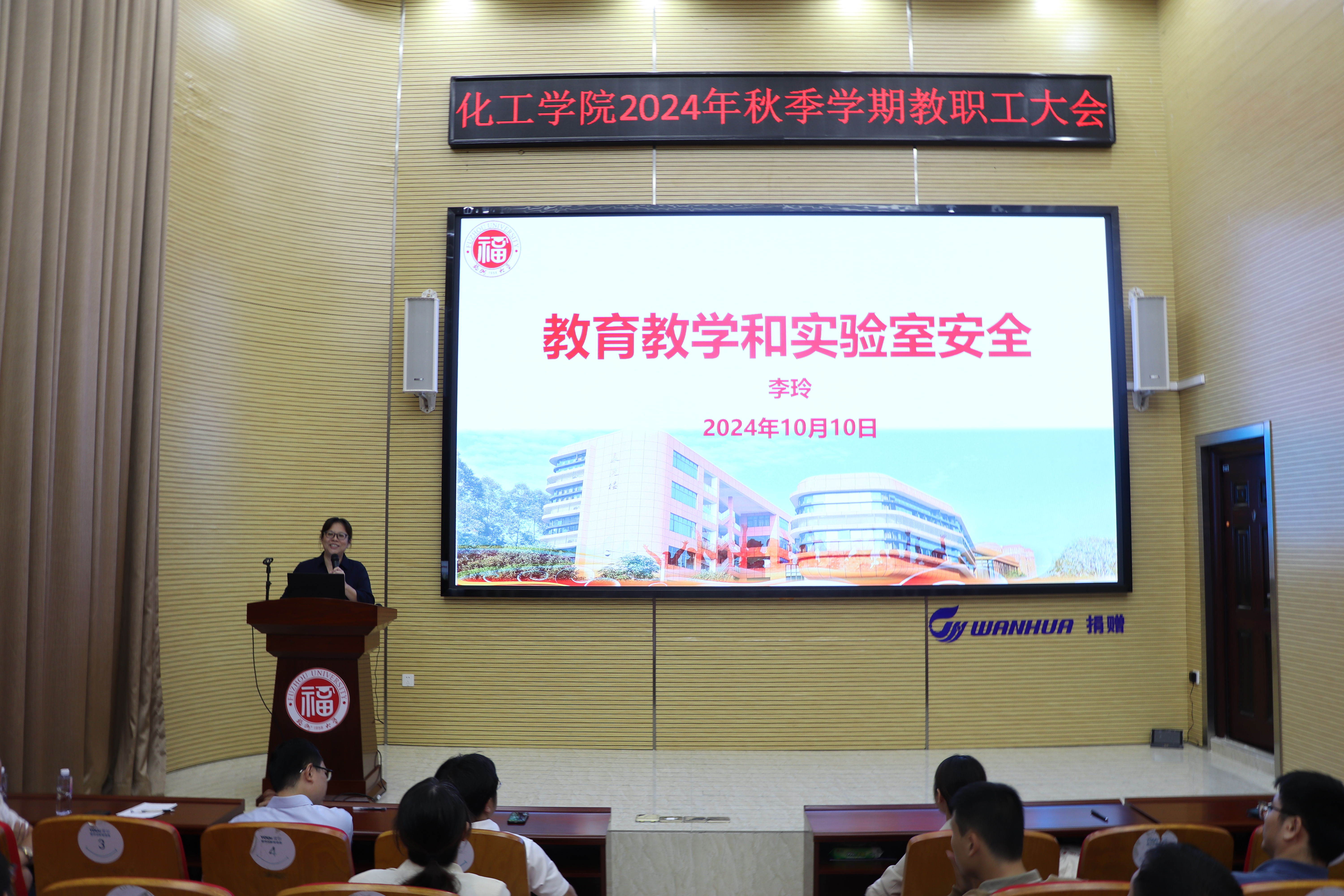 在旗山校区泉港楼优尔报告厅召开秋季学期教职工大会。会议由院党委书记林航主持。学院党政领导及全体教职工参加了会议。