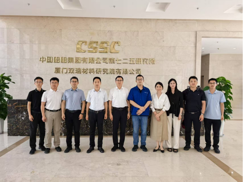 在中国船舶725所,学院教师深入了解了院所发展历程,特别是在福建的建设情况,参观企业多个特色实验室,与科研工程人员就工程技术及材料研发等领域开展技术探讨,同时热情邀请院所领导到学校和学院回访。