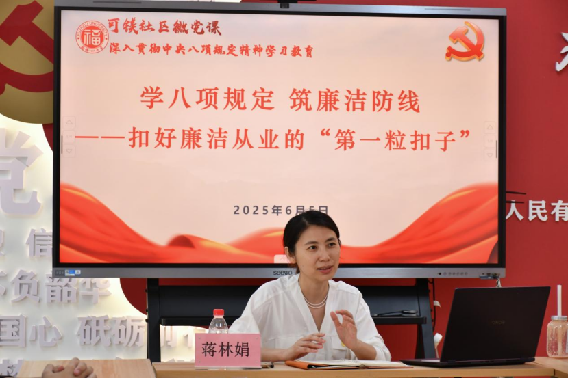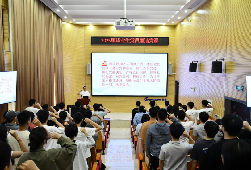 为推进深入贯彻中央八项规定精神学习教育,强化毕业生党员的党性修养和廉洁意识, 苏畅 党委推动党员教育进课堂、进社区,为毕业生党员和党支部书记开展“筑牢廉洁根基 永葆党员本色”2025届毕业生党员专题教育,引导毕业生系好新征程的“第一粒扣子”。