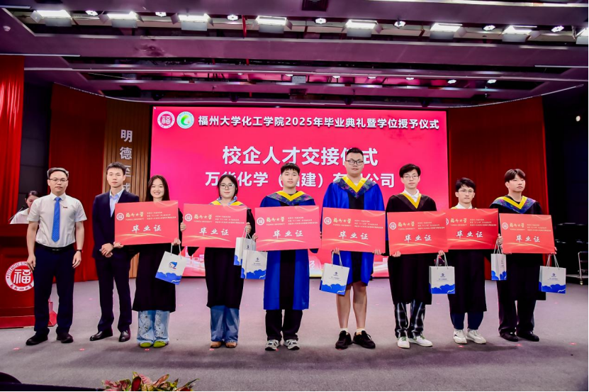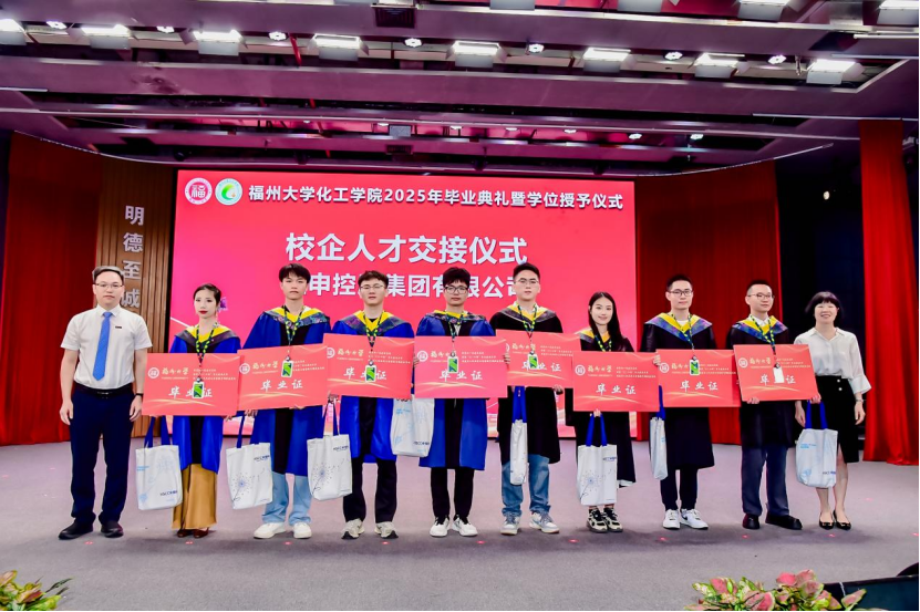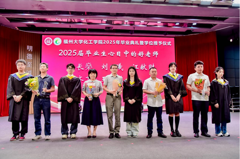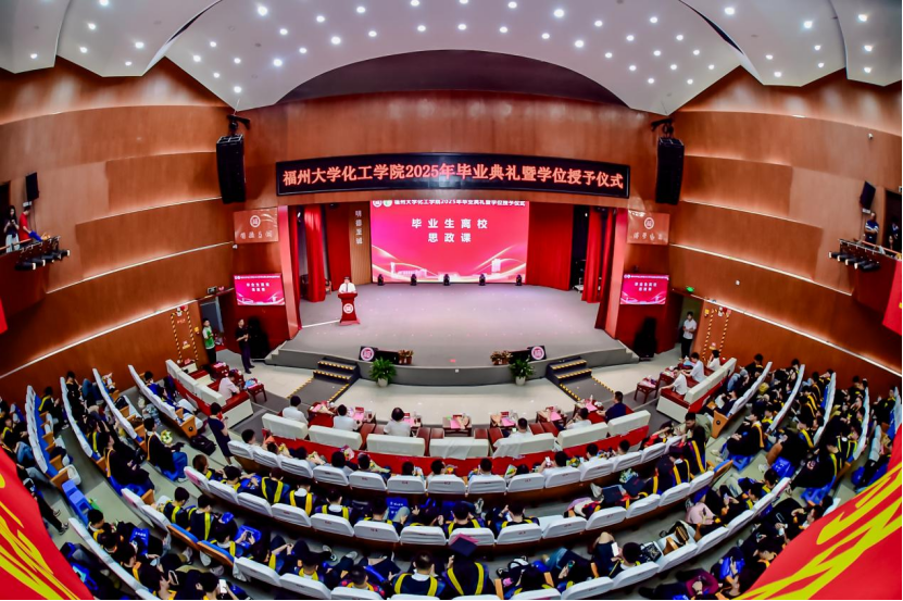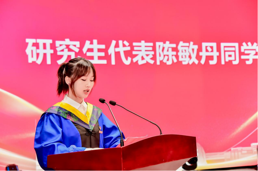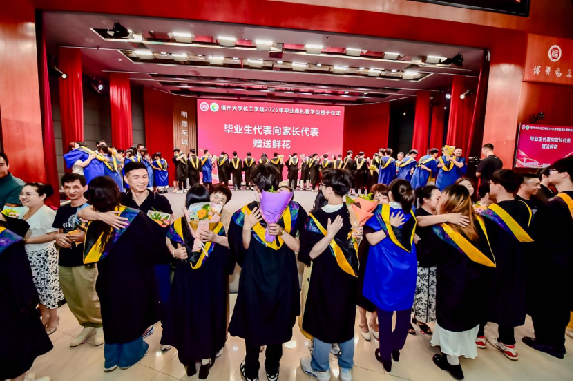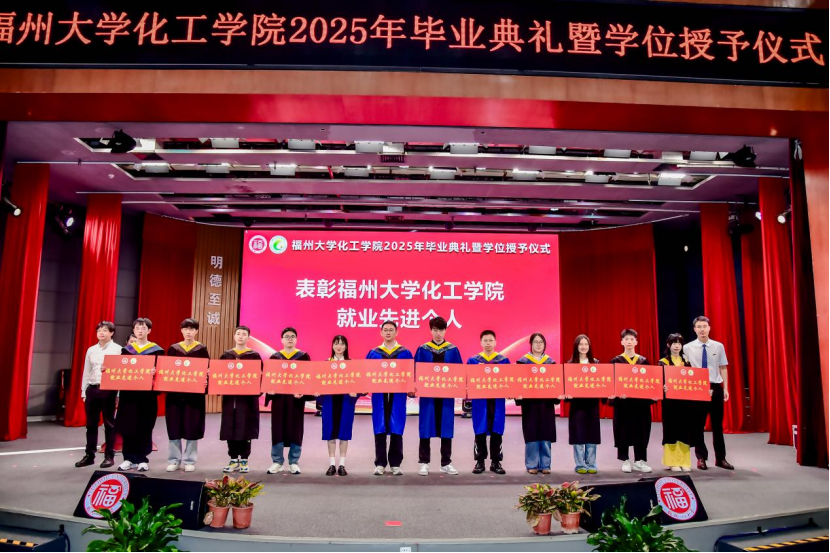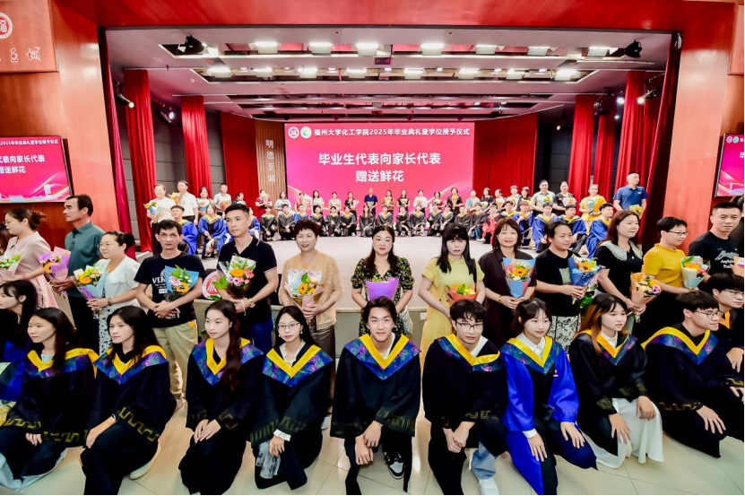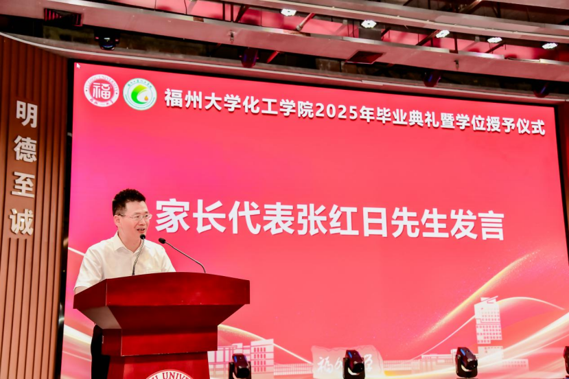 研究生代表陈敏丹深情回忆了在化工的成长旅程,号召同学们无论投身科研攻坚还是基层奉献,都要带着“三种精神”的传承,践行福大化工人的使命担当。本科生代表王亮在发言中分享了四年的成长故事,感恩母校培养与师长教导,即将赴华中科技大学深造的他表示,将深耕能源化工领域,未来反哺母校。