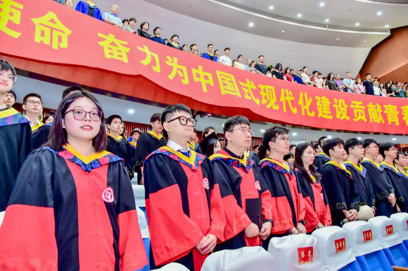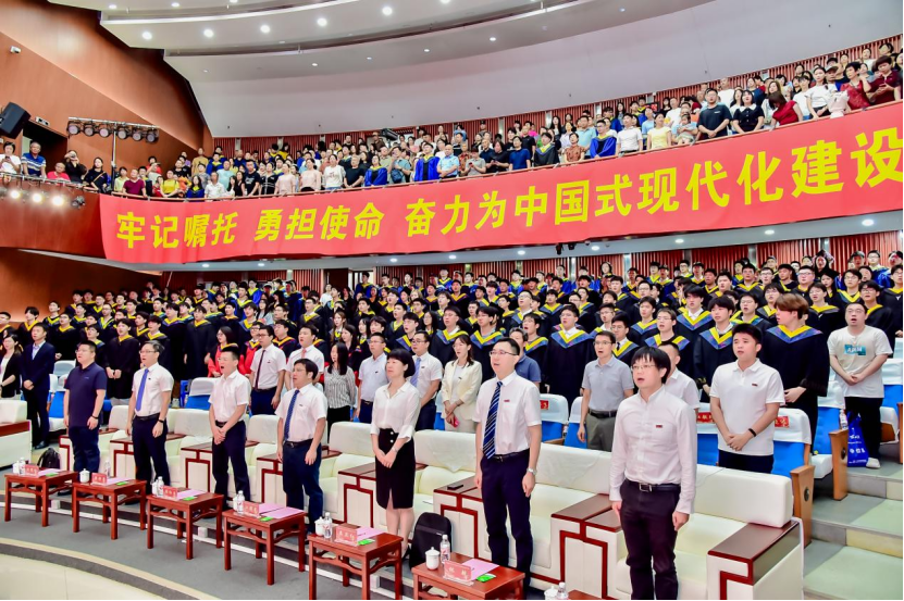 最后,江莉龙副校长强调,青年一代,当勇担使命,以笔为剑,以梦为马,书写自己的辉煌。希望毕业生们把握好人生方向,与国家共进、与时代同行,既要仰望星空、志存高远,把爱国之情、报国之志与个人理想抱负紧密结合,也要脚踏实地、行稳致远,在服务国家发展和人民福祉的实践中彰显青春风采。