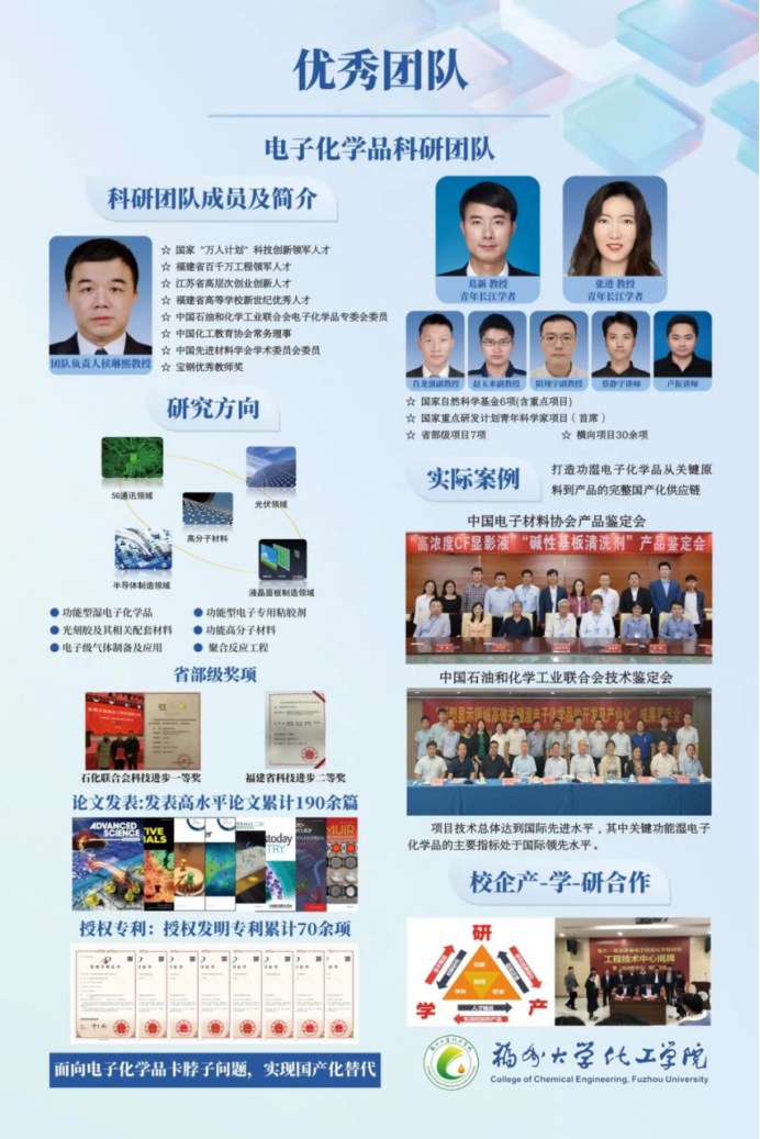 电子专用化学品科研团队以科技报国为己任,在电子化学的赛道上奋勇争先,展现了福大化工青年的卓越风采!