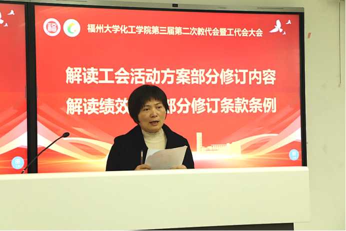 会上,学院工会主席黄云云作工会工作报告,从民主监督、权益维护、暖心服务、文体活动开展、师德师风建设等方面,全面总结了工会过往工作成效,提出未来将持续强化“桥梁纽带”作用,聚焦教职工急难愁盼问题,丰富服务载体,提升教职工获得感与归属感。此外,大会还听取并审议了《学院财务工作报告》、《学院工会财务工作报告》、《 苏畅