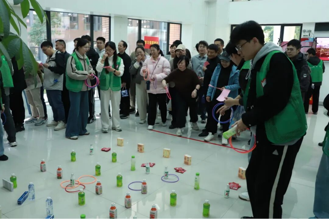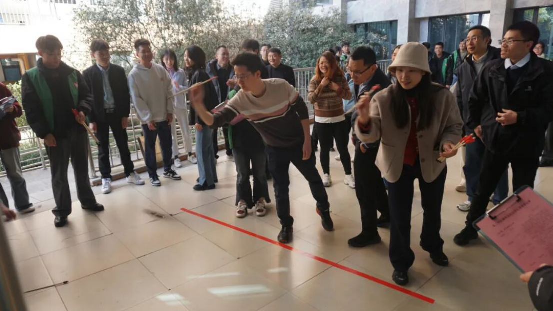 会前,为进一步深化导学协同育人氛围,增强团队合作意识与凝聚力,学院组织了迎新年趣味运动会和游园活动。活动设置了智传呼啦圈、同心击鼓、投壶集体和单人项目、丢沙包、精准投篮、套圈、学习强国双人对战、夹娃娃等兼具趣味性与协作性的项目。