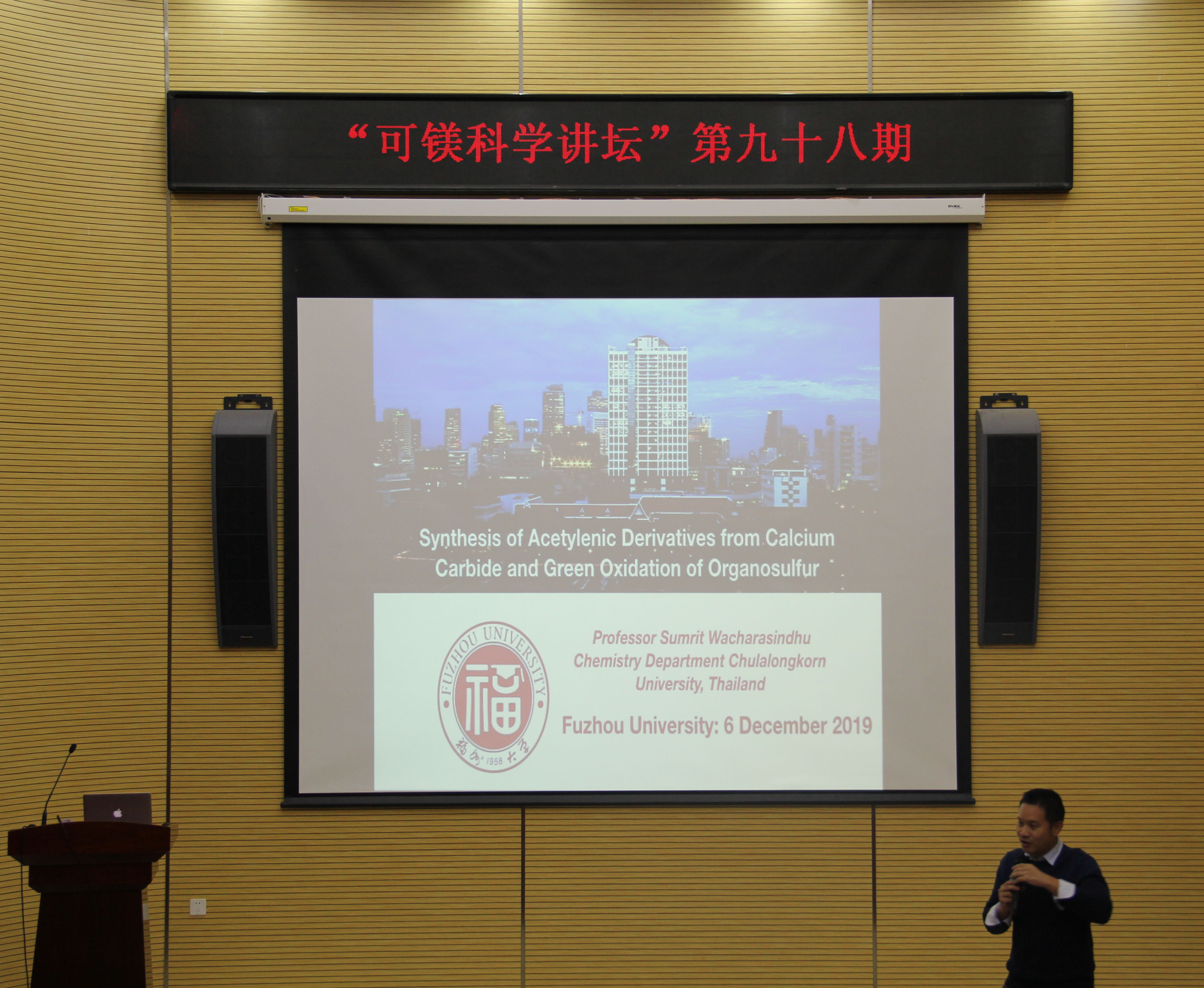 2019年12月6日上午十点,来自泰国朱拉隆功大学理学院的Sumrit Wacharasindhu博士应邀担任本次“可镁科学讲坛”主讲人,于 苏畅