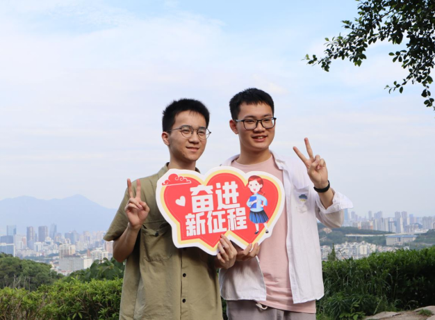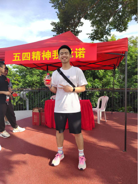 同学们沿着福道一路向前,首先来到“二十大精神我知道”活动点,在这里同学们要从“党的二十大”相关题目中选取一道并成功答题,计为顺利打卡。旨在考察同学们对党的二十大精神的掌握情况,通过寓教于乐的方式进一步帮助同学们强化学习。第二关,同学们来到望峰台旁的榕树下与福山优美的风景合影,手持主题标语、笑容洋溢,展现青年积极向上、奋勇争先的精神面貌。最后一个环节是“五四精神我承诺”,同学们需要先完成贴有五四精神承诺词矿泉水的套圈活动,后手持水瓶、进行“五四精神”承诺宣誓方可视为打卡成功。