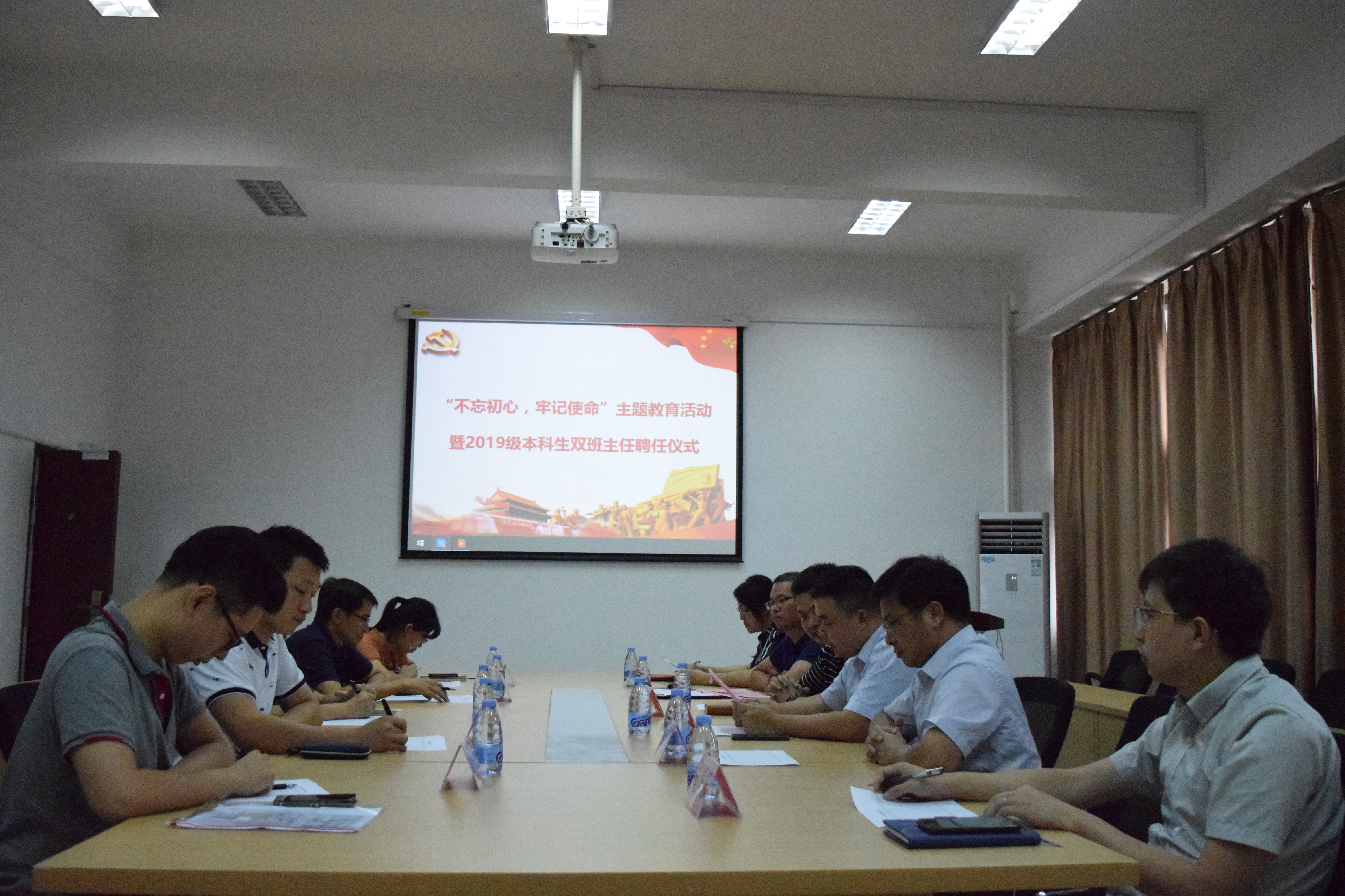 在泉港楼411会议室召开“不忘初心、牢记使命”主题教育暨2019级本科生双班主任聘任仪式,会议由党委副书记岳志强副教授主持,学院主要领导及受聘班主任参加本次会议。