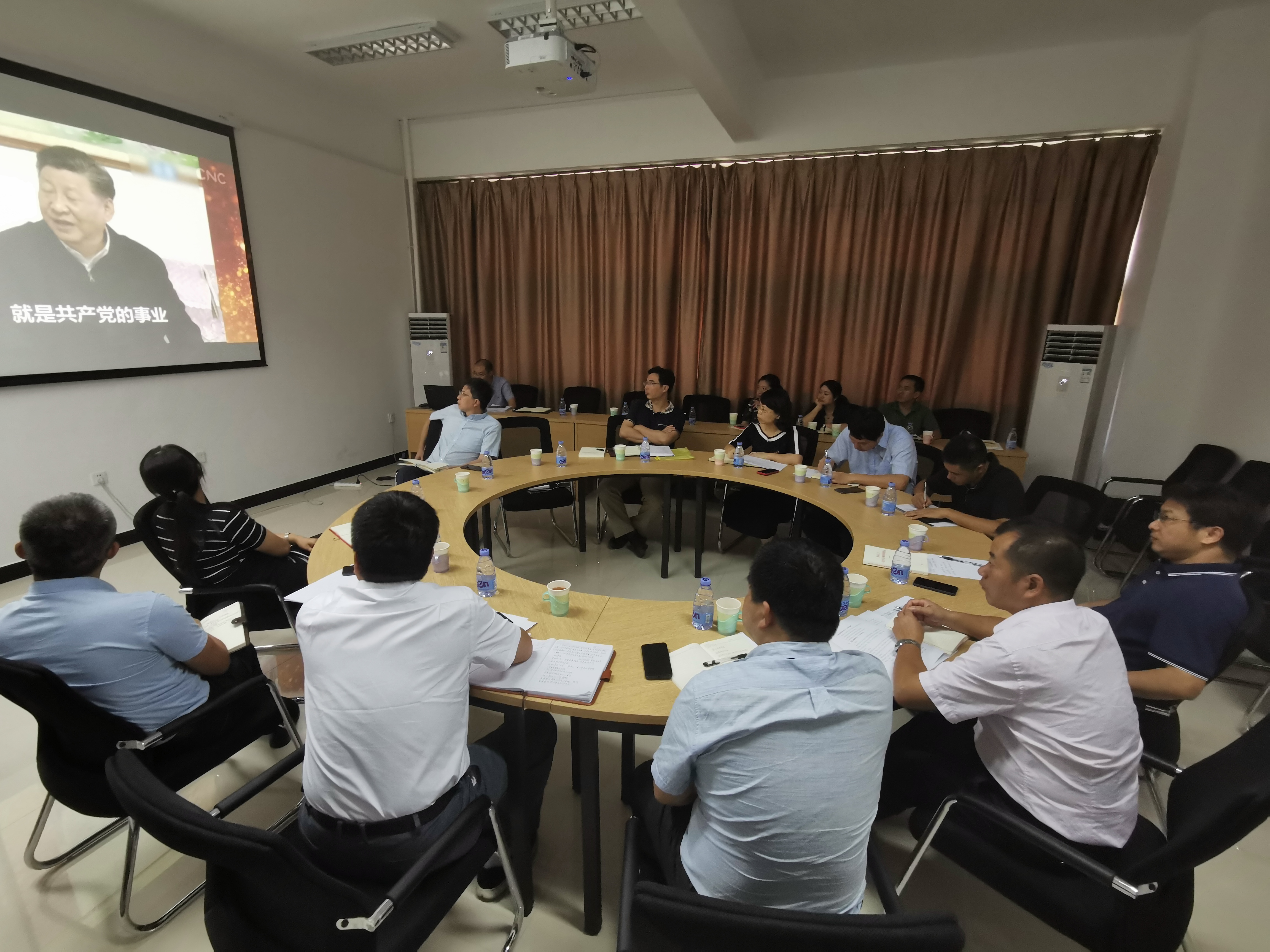 与会人员观看了习近平总书记等党和国家领导人不忘初心、一心为民的视频片段,深刻领会总书记指出“让老百姓生活更幸福就是共产党的事业”的要求,认识到越是长期执政,越不能忘记党的初心使命,越不能丧失自我革命精神。