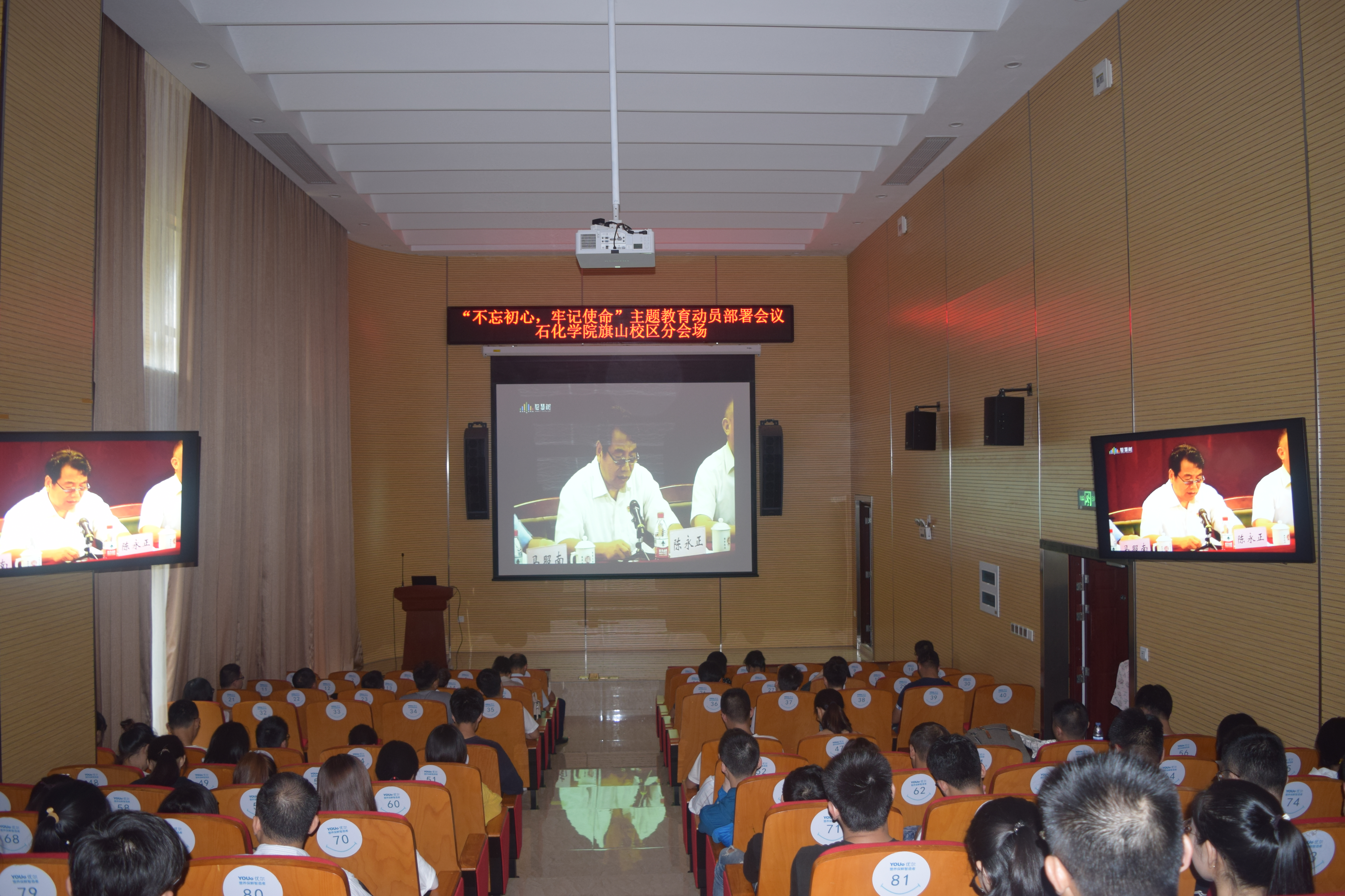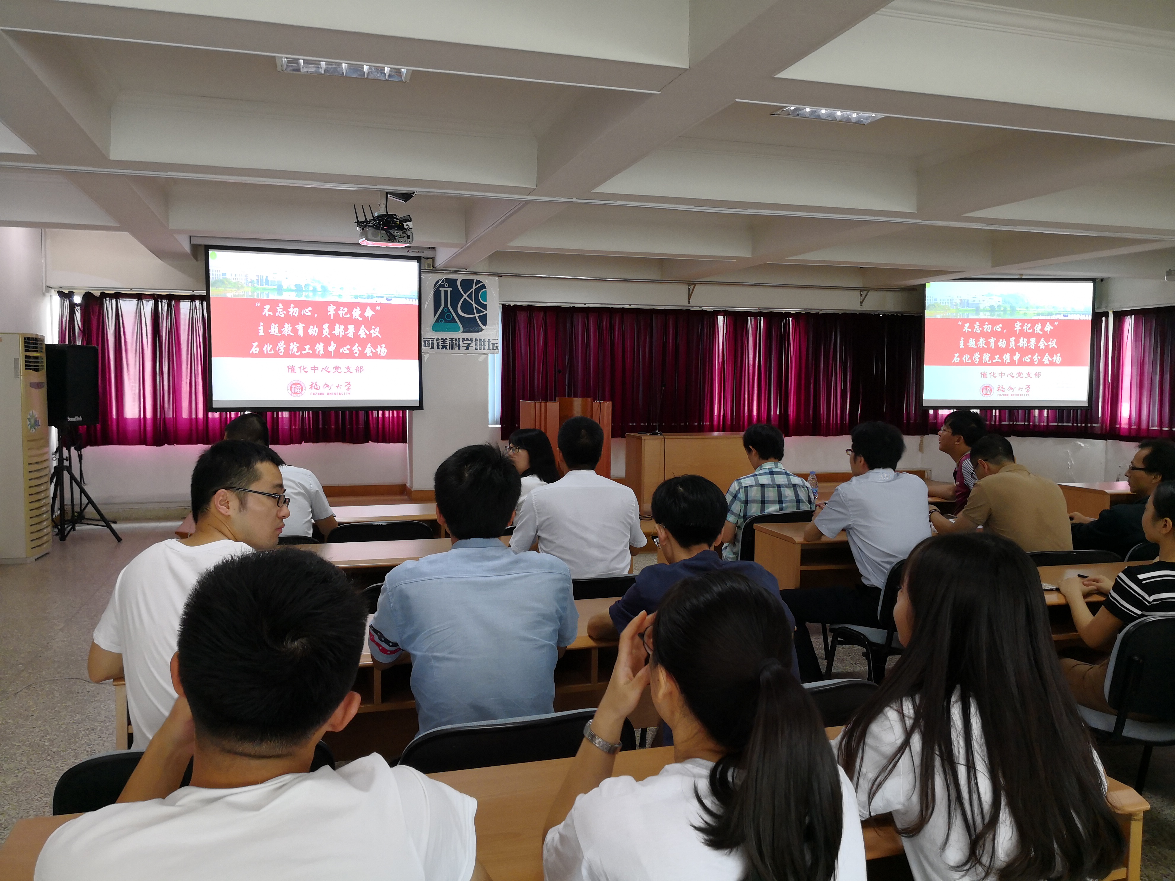 组织全体师生党员观看并学习了“不忘初心,牢记使命”主题教育动员部署会议直播。除了选派代表参加学校主会场学习,本次直播学习学院共设旗山校区、泉港校区、怡山校区化肥催化中心三个分会场,三校区师生党员同步观看直播。