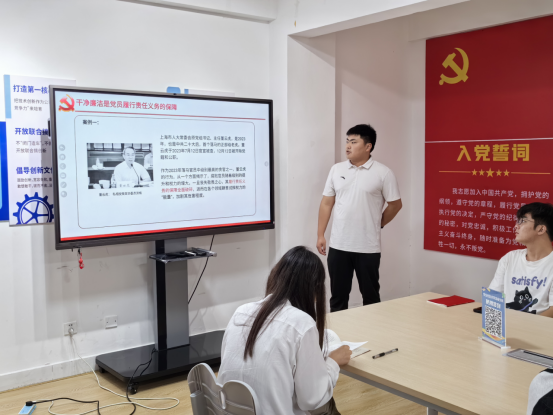 随后2023级研究生社区服务党支部书记、2023级研究生辅导员王颖慧老师带领与会党员共同学习《中国共产党纪律处分条例》,并围绕“如何做一个干净廉洁的党员”展开热烈讨论。