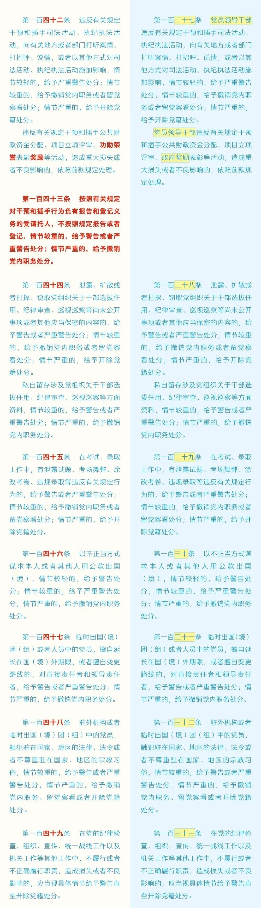 【党纪学习教育】 《中国共产党纪律处分条例》修订前后对照表